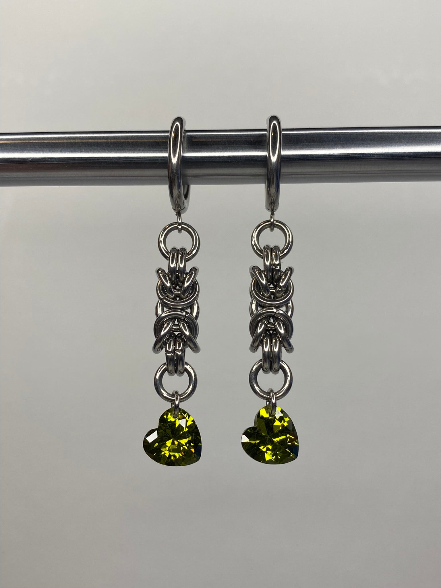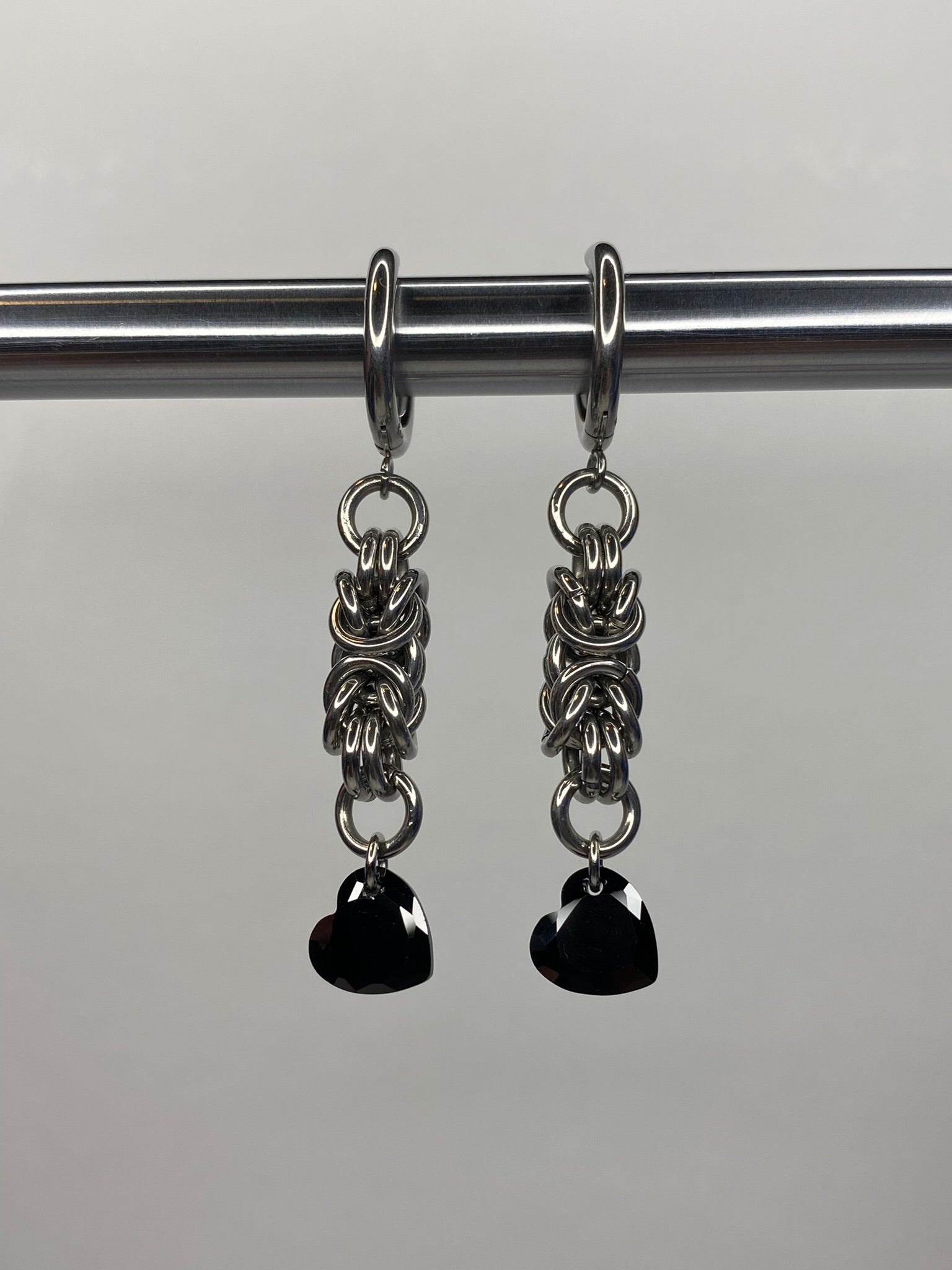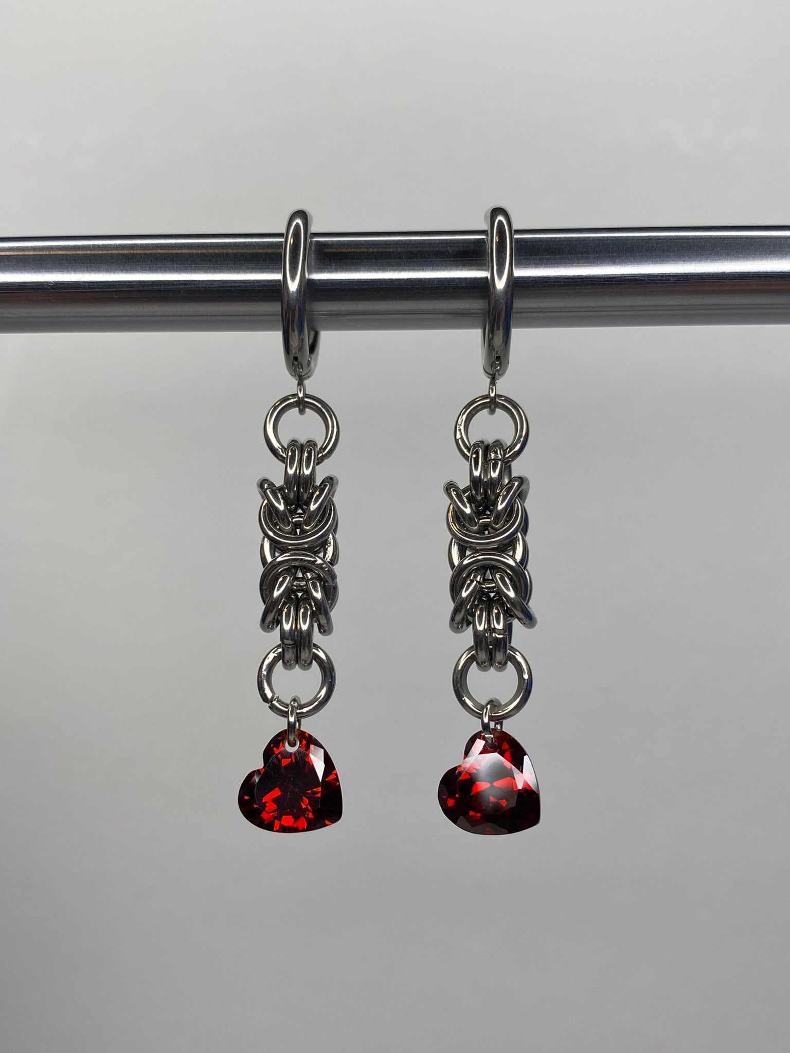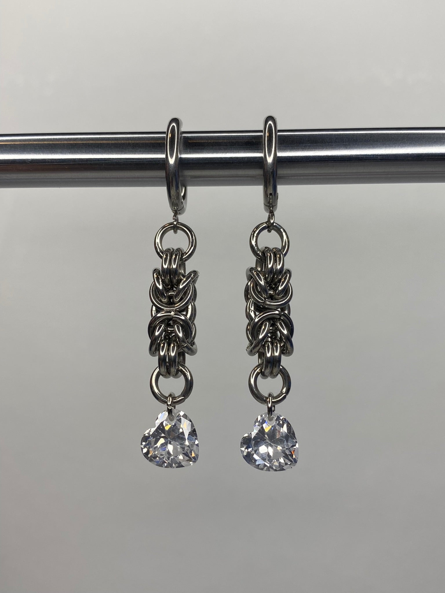 The Poisoned Candy Earrings masterfully blend playful innocence and sweetness with a hint of peril. The delicate sparkle of the crystals draws the eye, evoking the irresistible allure of a sweet treat, while the interlinked rings form a bold, industrial backbone that speaks to the subtle threats that often accompany the most enticing attractions.